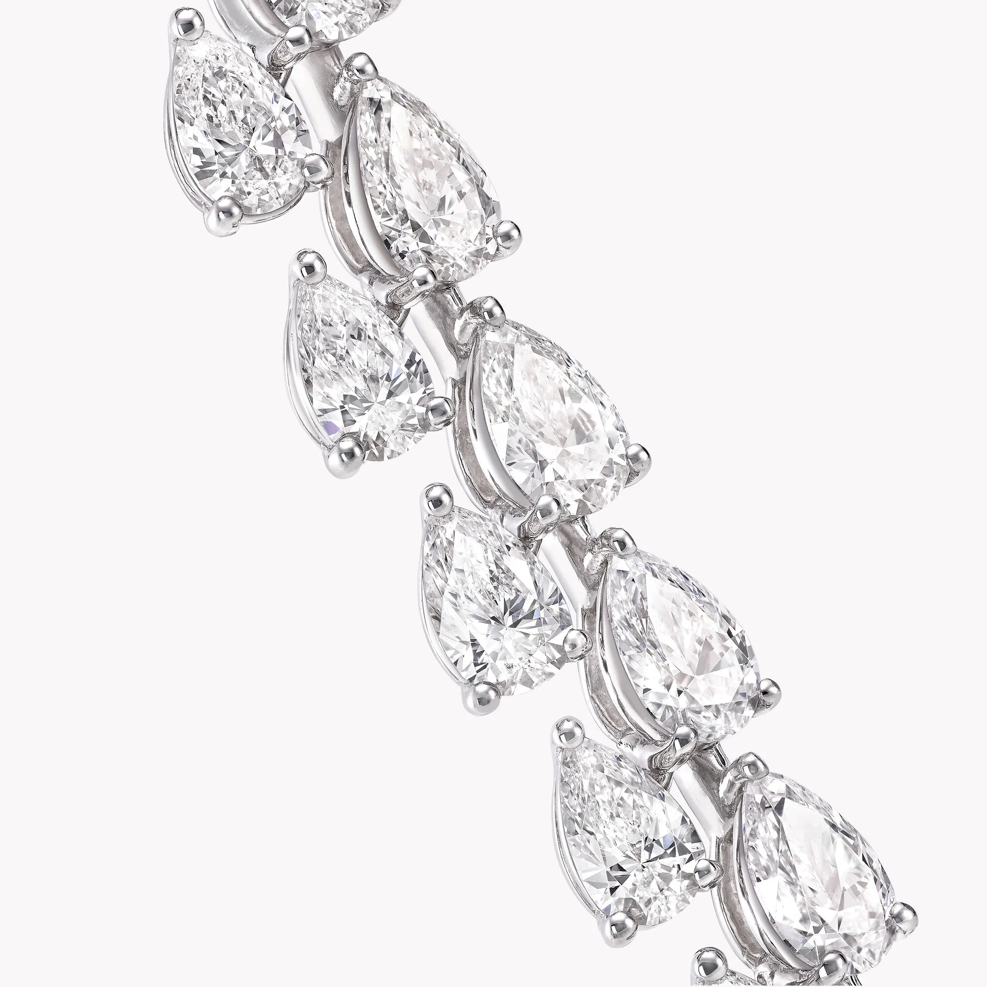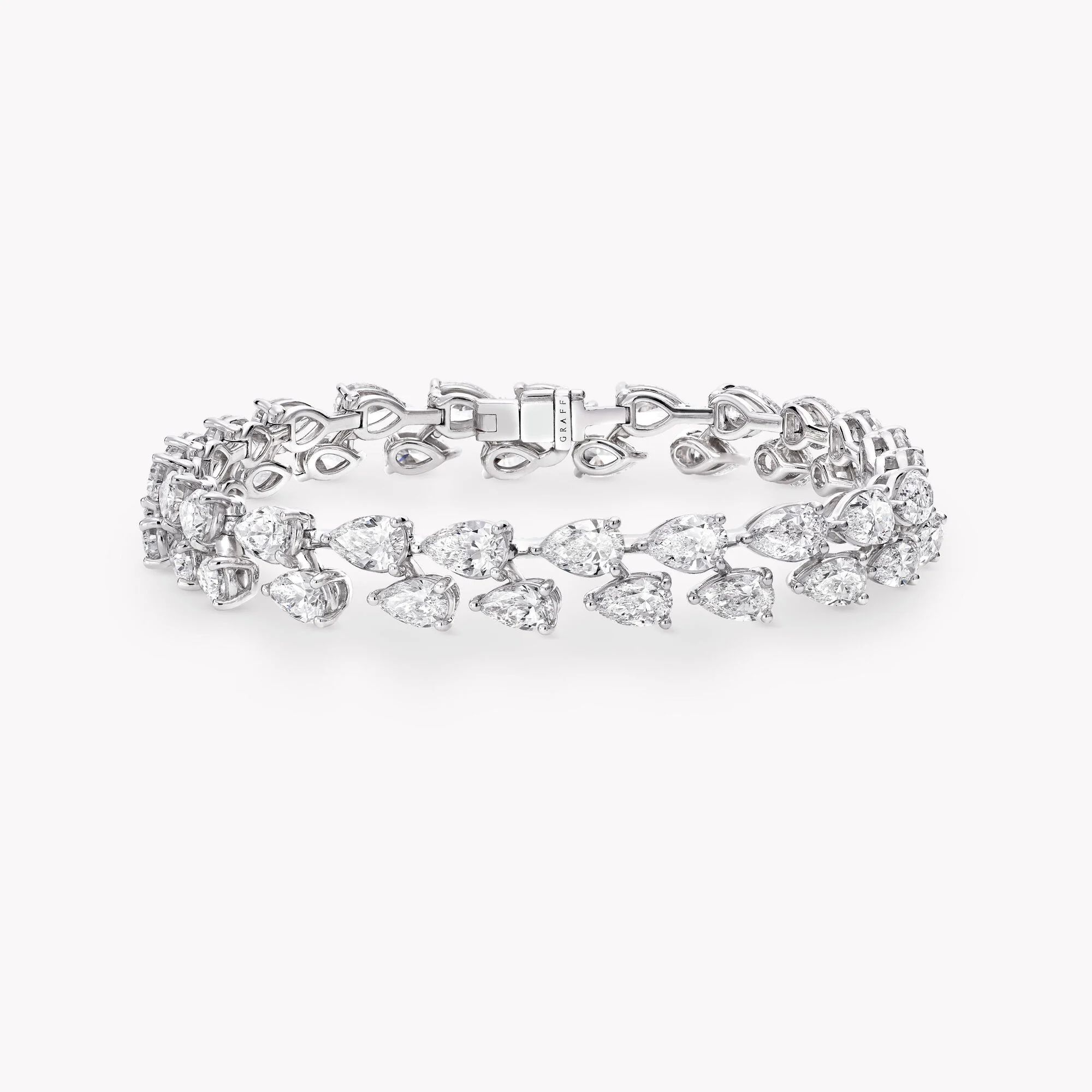 Das Classic Graff Diamant-Armband, Referenznummer RGB362, ist eine wahre Hommage an die Kunst der Haute Joaillerie. Gefertigt aus strahlendem Weißgold, betont dieses Armband die natürliche Schönheit der birnenförmigen Diamanten, die mit einer Gesamtkaratzahl von 17,19 Karat funkeln. Dank der dezenten, minimalen Fassung können die Diamanten ihre unvergleichliche Brillanz und Reinheit voll entfalten.